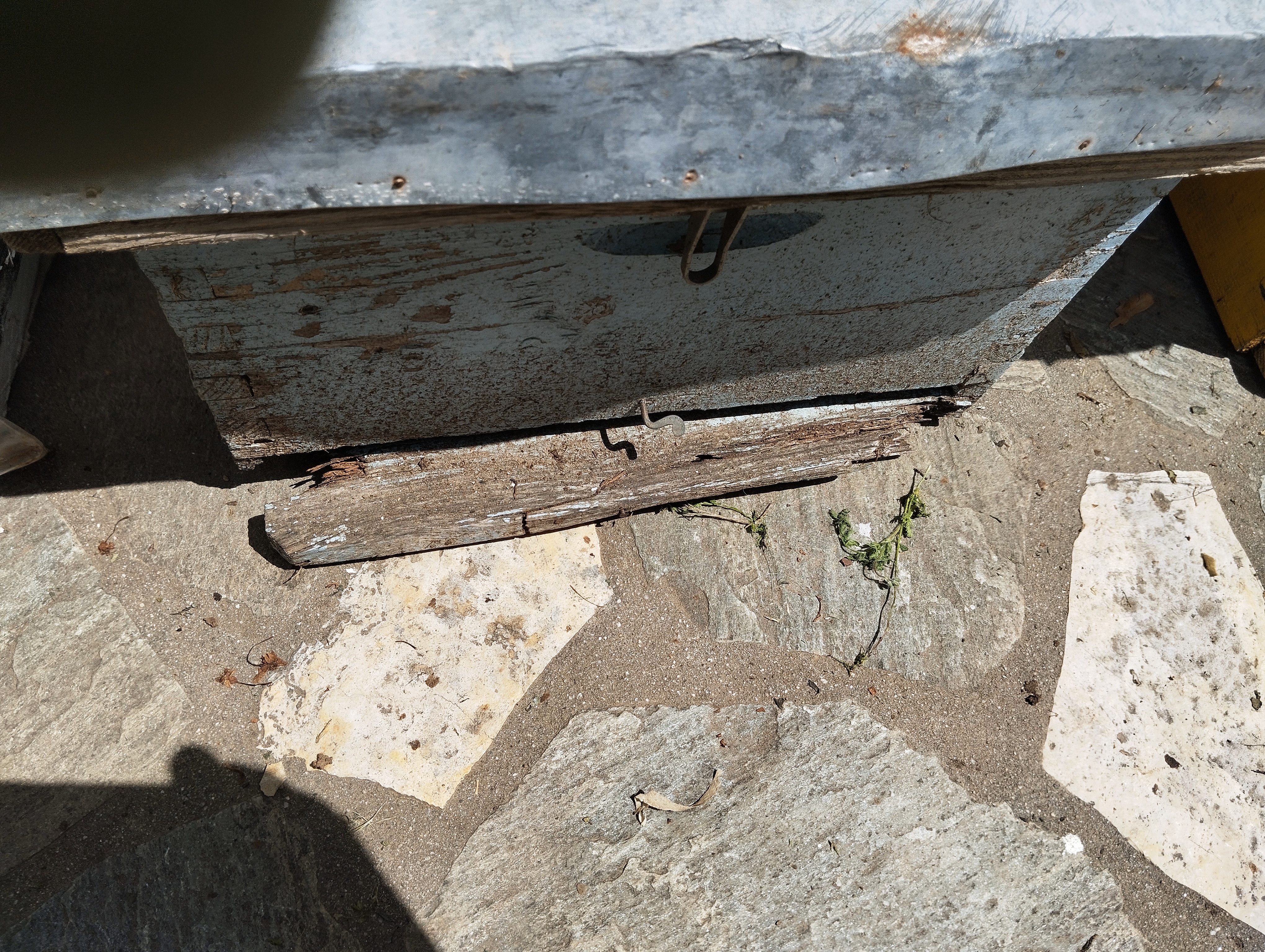 Λεπτομέρεια εδώ, στην ορεινή μου τοποθέτηση στα πεύκα που δεν είχα κανένα πρόβλημα από λεηλασίες όσα χρόνια πάω εκεί, μια που δεν έχω γειτονικούς μελισσοκόμους που να ακολουθούν την μέθοδο του ταυτόχρονου τρύγου και απομελίσματος μέσα στο μελισσοκομείο!