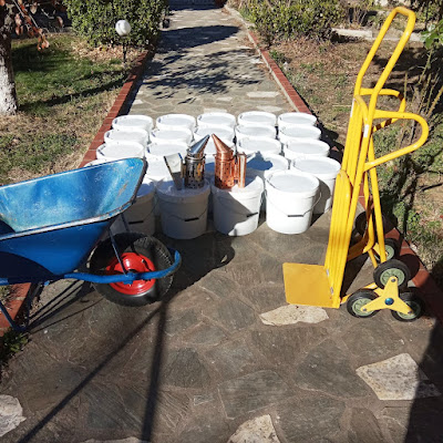 Κοντά στα 700 ευρώ για όλα αυτά στην διάρκεια αρκετών χρόνων, για να μειωθεί αισθητά το χαμαλίκι της μελισσοκομικής εργασίας, και αντικατάστασης του με κεφάλαιο, και αυτά με καρότσια που όπως τα αναφέρω εγώ "προσφέρουν λιγότερη εργασία από ότι ένας ανθρώπινος βοηθός". Στο μέλλον θα σας παρουσιάσω και τα καρότσια που "προσφέρουν περισσότερη εργασία από ότι ένας ανθρώπινος βοηθός"! Τα οποία φυσικά έχουν και κόστος χιλιάδων ευρώ, και όχι απλώς μερικών εκατοντάδων (σας χρωστάω ακόμη μερικές λύσεις με τροχούς, με λίγα λεφτά, για μετακινήσεις μέσα στο μελισσοκομικό εργαστήρι, υπομονή για την αμέσως επόμενη ανάρτηση).