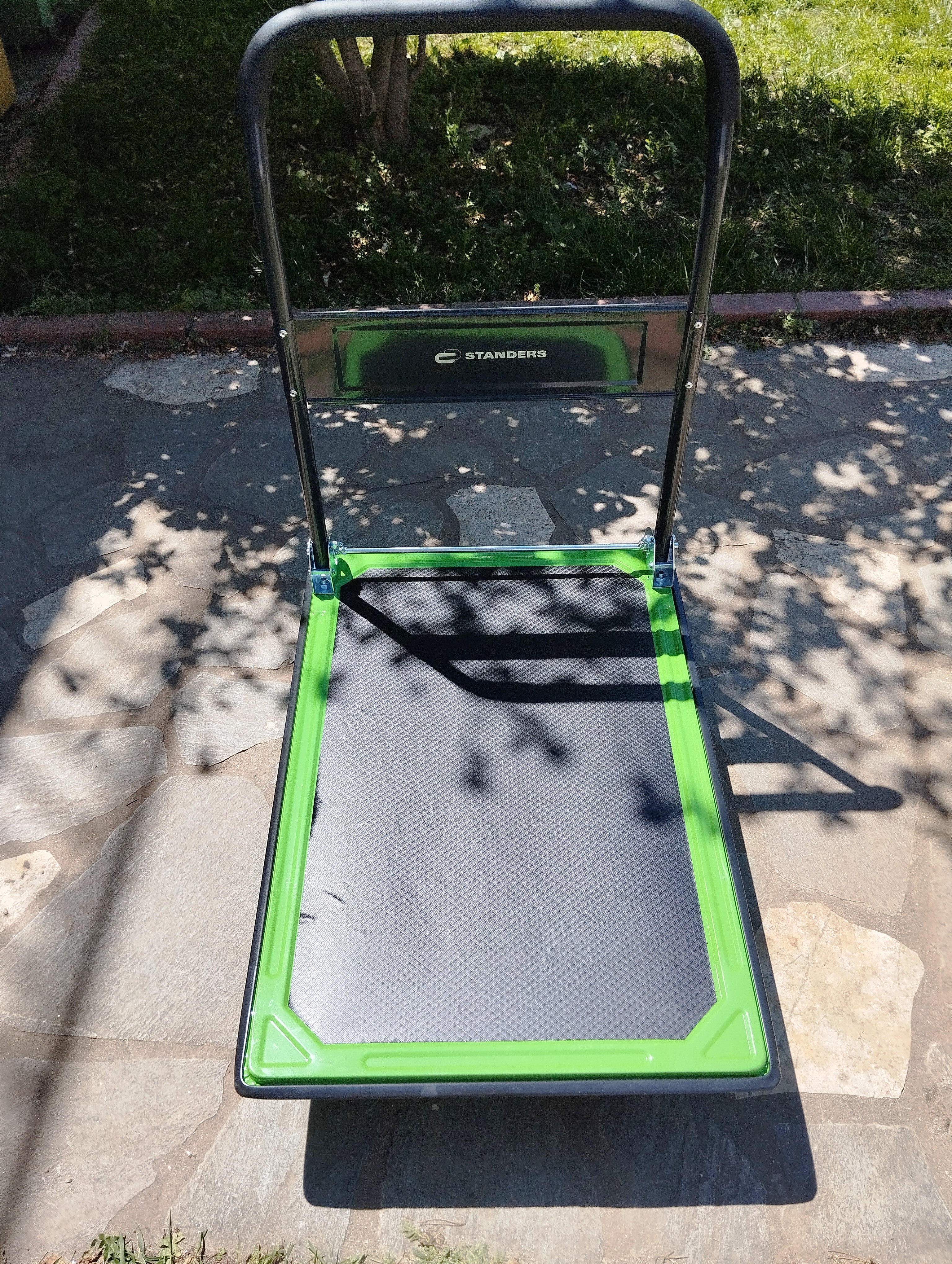 Το μικρό έχει μεταφορική ικανότητα 150 κιλών (καλά είναι να μην τα φτάνετε στα όρια που αναγράφει ο κατασκευαστής τους! 4 όροφοι με μέλια είναι κοντά στα 80-90 κιλά, μια χαρά φορτίο! Δεν χρειάζεται να βάλετε 6 ορόφους σε αυτό για να φτάσετε τα 120-140 κιλά, είναι πολλά! Δεν είναι τόσο στιβαρό όσο ένα καρότσι πλατφόρμα από μασίφ σίδηρο (ατσάλι), μην υπερβάλετε, δεν χρειάζετε να τα τιγκάρετε όπως τα ζορίζουν στα μελισσοκομικά μαγαζιά! Εκεί προσπαθούν να "διώξουν" πελάτες όσο το δυνατών ταχύτερα, να του φορτώσουν 300-400 κιλά τροφή σε μια φορά, να πληρώσει, να τον τιμολογήσουν, να τα βάλουν στο αμάξι του, για να ελευθερώσουν το καρότσι πλατφόρμα για τον επόμενο πελάτη που περιμένει. Δεν έχουν την πολυτέλεια να απασχολούν για έναν πελάτη σε πολλαπλά δρομολόγια το μοναδικό καρότσι τους, ιδίως εάν περιμένουν στην ουρά πάνω από 1-2 πελάτες. Εσείς δεν θα έχετε τέτοιους περιορισμούς στο δικό σας εργαστήρι, τι ένα, τι δύο, δρομολόγια για την ίδια ποσότητα μεταφοράς!) με βάρος στα 8,3 κιλά, με διαστάσεις πλατφόρμας 47 Χ 72, και διάμετρο τροχών 10 εκατοστών. Μικρό, ελαφρύ, αναδιπλωμένο, άψογο ακόμη και για να το μεταφέρεις στο πόρτ μπαγκάζ ενός αυτοκινήτου για να κάνεις την μεταφορά των προμηθειών σου με αυτό (περιορισμός το ένα εκατοστό υψομετρικής διαφοράς σε κλίσεις ανάμεσα στους τροχούς του που θέτει ο κατασκευαστής του (οπότε δεν το κατεβάζεις άγαρμπα από τα πεζοδρόμια, και ψάχνεις διαρκώς για ράμπες για να περάσεις με αυτό!)).